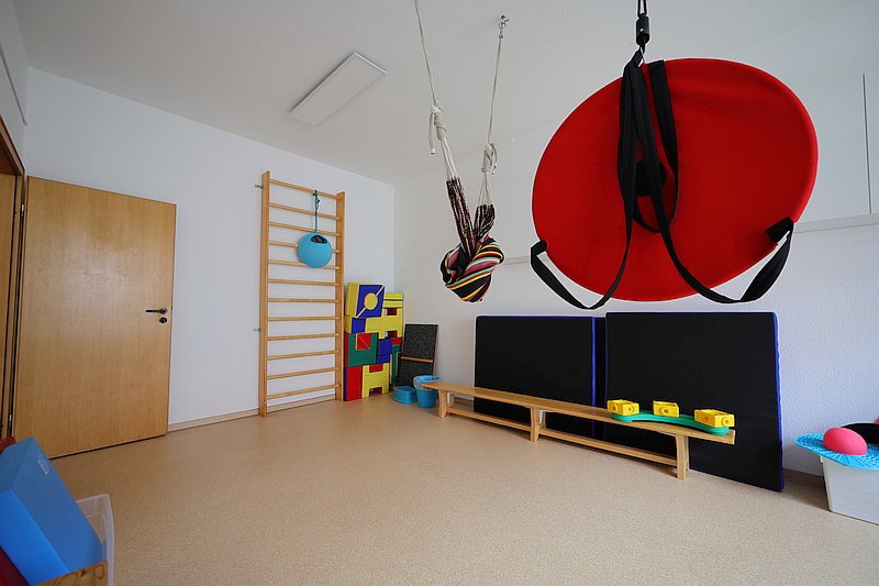 Hier können Sie unseren Bewegungraum sehen. Besonders freuen wir uns über die neu dazu gekommene schiefe Ebene.